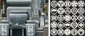 絶対的に掘る必要はありませんが90%ぐらいの方は家紋を掘ります。あまり普段必要のない物ですので特に若い方などご自分の家紋を忘れてしまいがちですが似たものがたくさんあって同じ文様でも丸付き、丸無しなど数千種以上あると言われています。家紋が判っていてもその呼び名が判らない時もあると思います。たとえ判らなくても何か手がかりがあれば小社でお調べできますのでお気軽にご相談下さい。 |