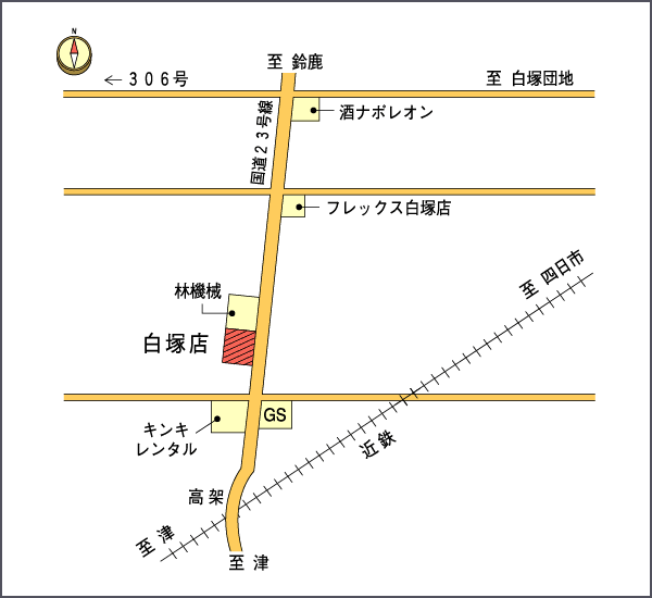 | 国道23号線沿い。中央分離帯があるので、津市方向からが便利です。 | |